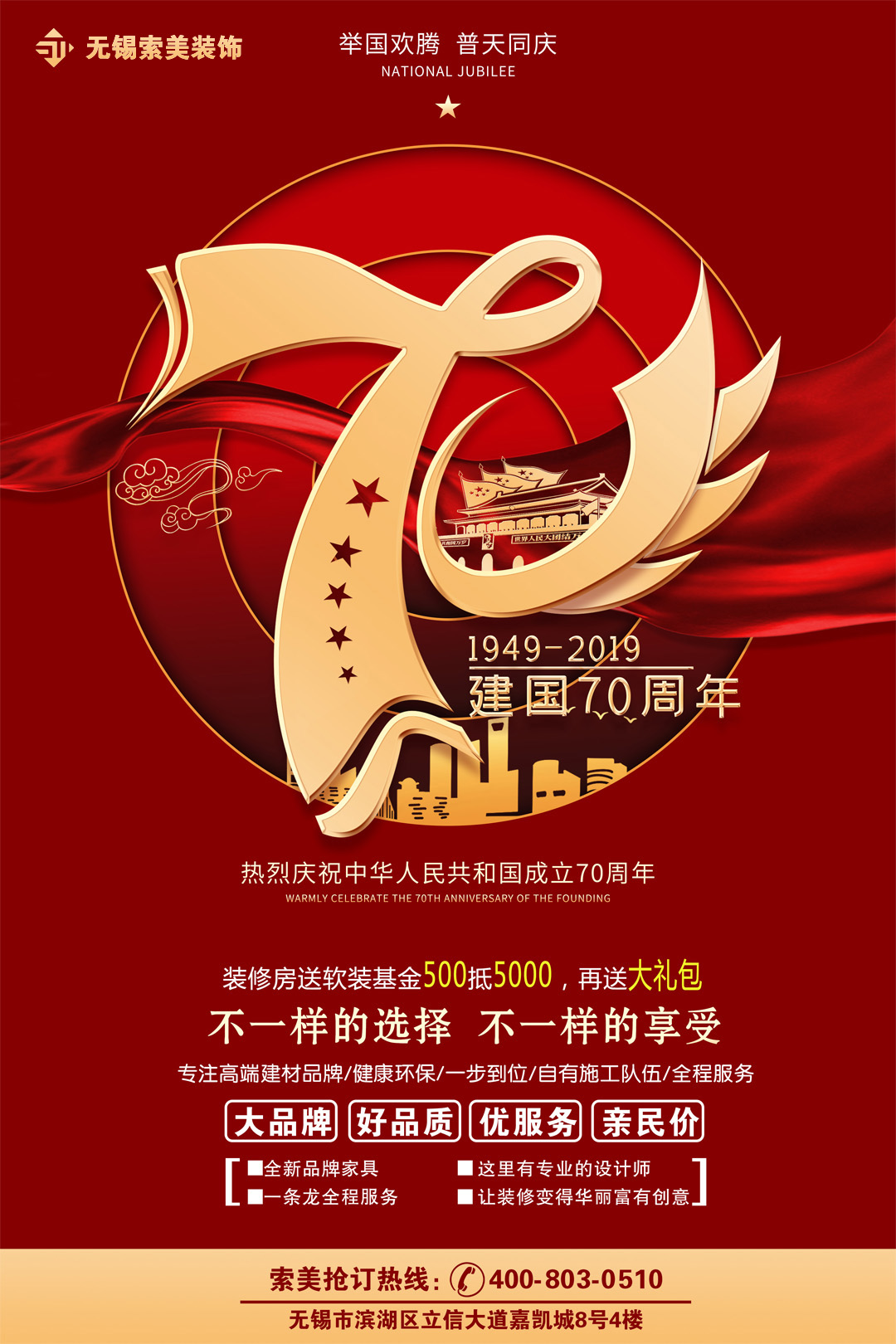 慶祝建國70周年 裝修房送軟裝基金 500抵5000